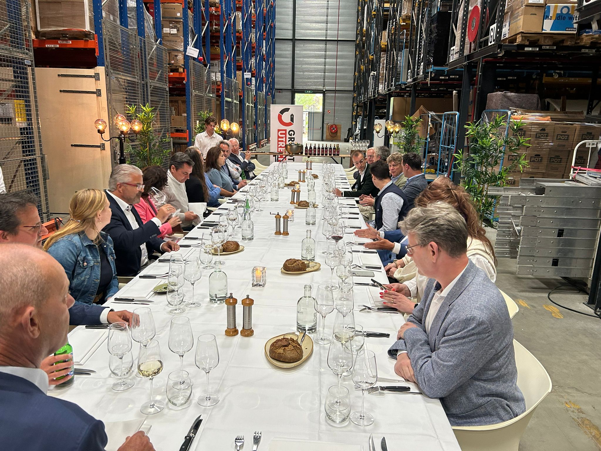 Na afloop konden we bijpraten tijdens een schitterend diner in het magazijn, waar we tussen de hoge stellingen genoten van een heerlijk driegangen diner dat verzorgd werd door Bergpaviljoen Bistronomique & Bar. De enthousiaste reacties van onze leden geven aan dat we kunnen terugkijken op een mooi en geslaagd event!